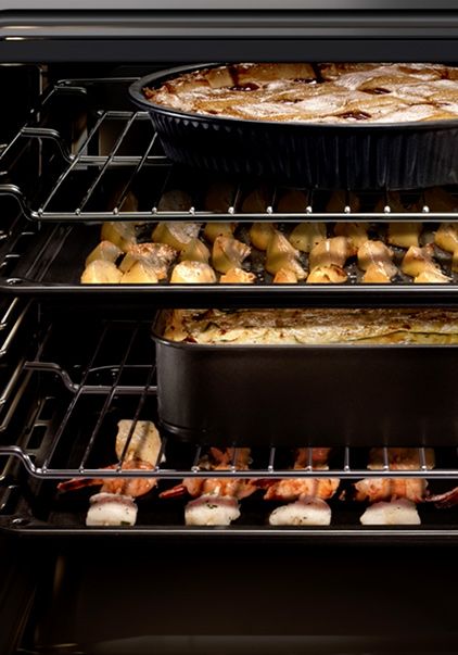 Un element care merita remarcat este tehnologia Cook4. Aceasta permite gatirea a pana la patru feluri de mancare diferite simultan fara ca mirosurile sa se amestece. O caracteristica foarte utila daca doresti sa gatesti preparate din peste alaturi de un desert delicios. Activarea functiei va duce la interactiunea dintre incalzirea cuptorului cu sistemul de circulatie a aerului, incalzind in mod egal zonele cu diverse preparate si asigurand circulatia continua a aerului in interiorul cuptorului.