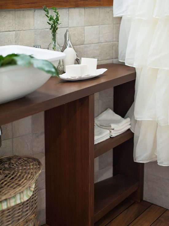 Pentru bucatarie s-a ales o amenajare cu aranjament tip L, ideal pentru o bucatarie de familie sau pentru a intretine oaspetii, deoarece aceasta configuratie a permis si acomodarea spatiului de luat masa, amenajat la fereastra. Contrastul dintre lemn si alb confera caldura bucatariei, iar frontul cu placile de faianta se armonizeaza cu restul decorului.