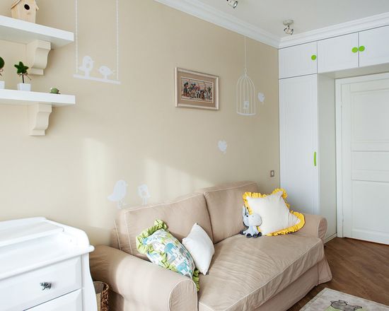 Camera se bucura de lumina naturala ce amplifica spatiul. Astfel, atat zona livingului cat si cea a bucatariei are o buna luminozitate, potentata de contextul predominant al albului. Amenajarea este una de inspiratie scandinava, dar mai colorata si mai vioaie decat interioarele clasice nordice.