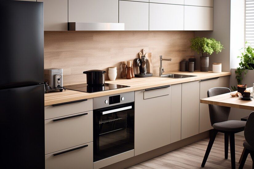 Zona de zi cu vedere spre bucătărie și locul de luat masa