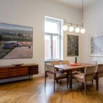 Renovarea acestui apartament generos are ca punct focal o colecție impresionantă de artă contemporană, care a determinat limbajul stilistic și modul de recompartimentare spațială și reorganizare funcțională