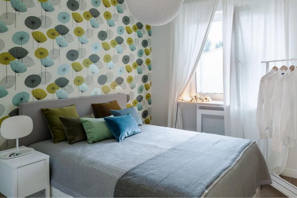 Dormitorul preia tematica minimala, de inspiratie nordica pe care o regasim in intreaga amenajare. Tapetul de pe peretele cu patul anima atmosfera dormitorului, iar albul din restul decorului echilibreaza cromatica.
