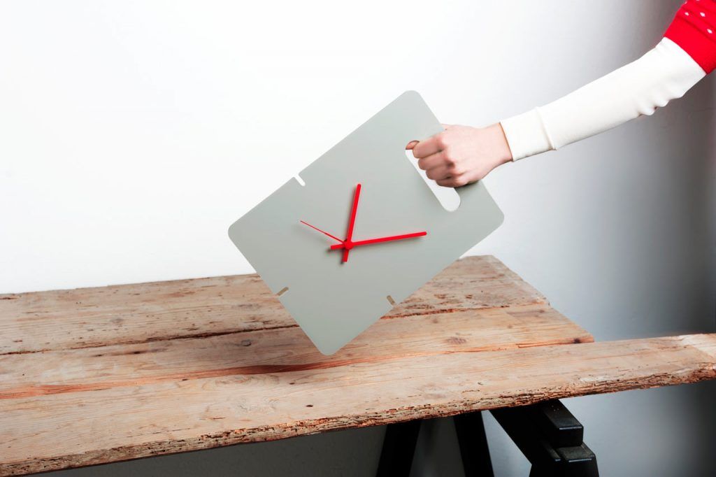 Primul ceas Lok are un maner de care poate fi apucat si transportat in orice camera sau poate fi intors si folosit ca suport pentru cravate, esarfe, ochelari sau orice fel de accesorii.