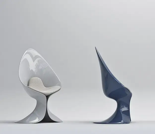 Liniile curbate, unduitoare lasa impresia unor forme care curg. Scaunul este cu adevarat o piesa veritabila si valoroasa precum o sculptura, o piesa de arta care infrumuseteaza orice spatiu. Aspectul neted si lucios dubleaza efectul de armonie pe care prezenta acestui scaun o ofera spatiului in care este introdus.