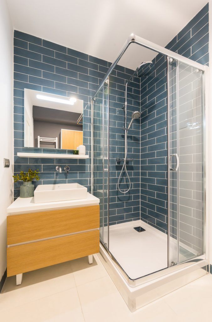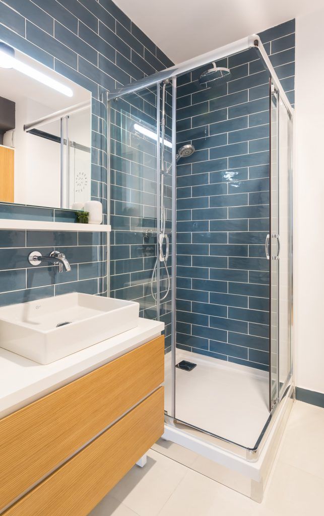 Aspectul geometric al celor doua bai se impune prin placile de faianta in placare rtesuta, asemanatoare texturii peretilor din caramida. Sticla si lemnul natural sunt cele doua componente de baza, impreuna cu oglinzile si lumina artificiala, marind vizual cele doua incaperi. Albastrul, galbenul si planetele decorative, traseaza intr-un mod cat mai evident liniile stilului scandinav, iar alaturi de obiectele sanitare sanitare, transforma cele doua bai, in spatii ultra moderne.