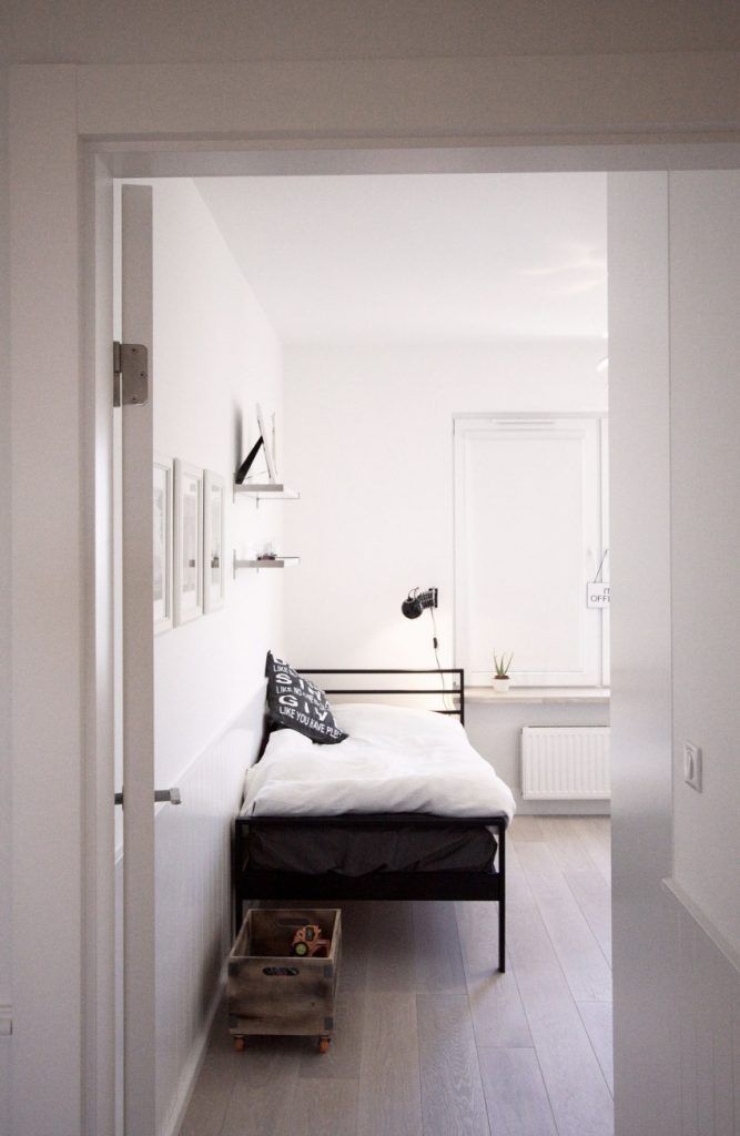 Este un spatiu scandinav, cu acel contrast clasic alb-negru, cu lumina naturala lasata sa patrunda nestingherita in interiorul camerei. Esentele de lemn de stejar din structura pardoselei, peretii albi, mobilierul alb, decoratiunile minimale permit spatiului sa respire chiar si in conditiile cand familia se reuneste aici.