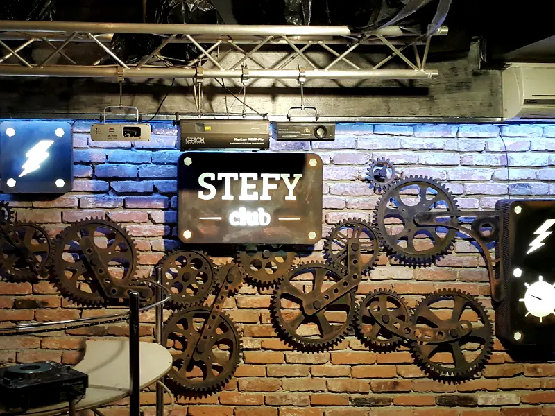Viziune de ansamblu a peretelui ce gazduieste creatia Foldo din localul Stefy