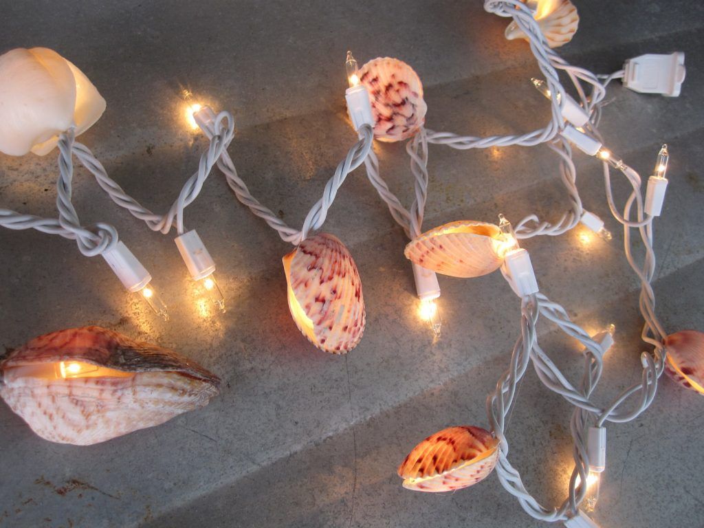 O idee simpla de accesoriu pentru iluminat: ledurile din imagine au fost acoperit cu scoici.