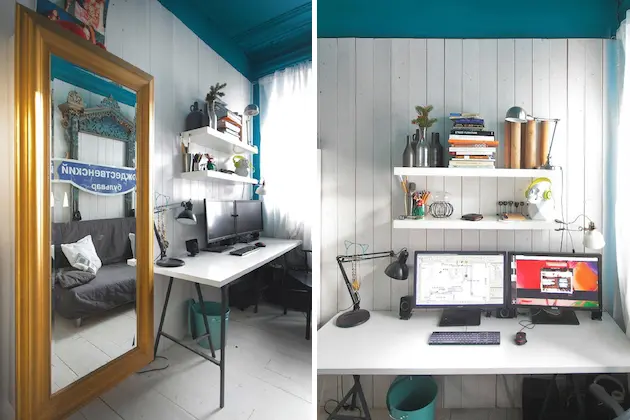 Stilul in care a fost amenajat acest apartament este unul special, iar aerul din intreaga casa emana bun-gust din toate colturile, fie ele si mici, locuintei. Desi nu este un apartament complet cu bucatarie si baie, aceasta camera include in ea spatiu locuibil,birou, spatii de depozitare si chiar un pat ridicat la inaltime.