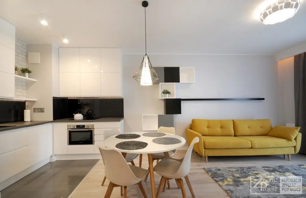 Pentru spatiile mici putem miza intotdeauna pe abordarile simple cu mobilier modern si o paleta de culori care se imbina armonios. Asta iti propunem pentru amenajarea unui spatiu mic precum acesta pe care il vom detalia astazi.