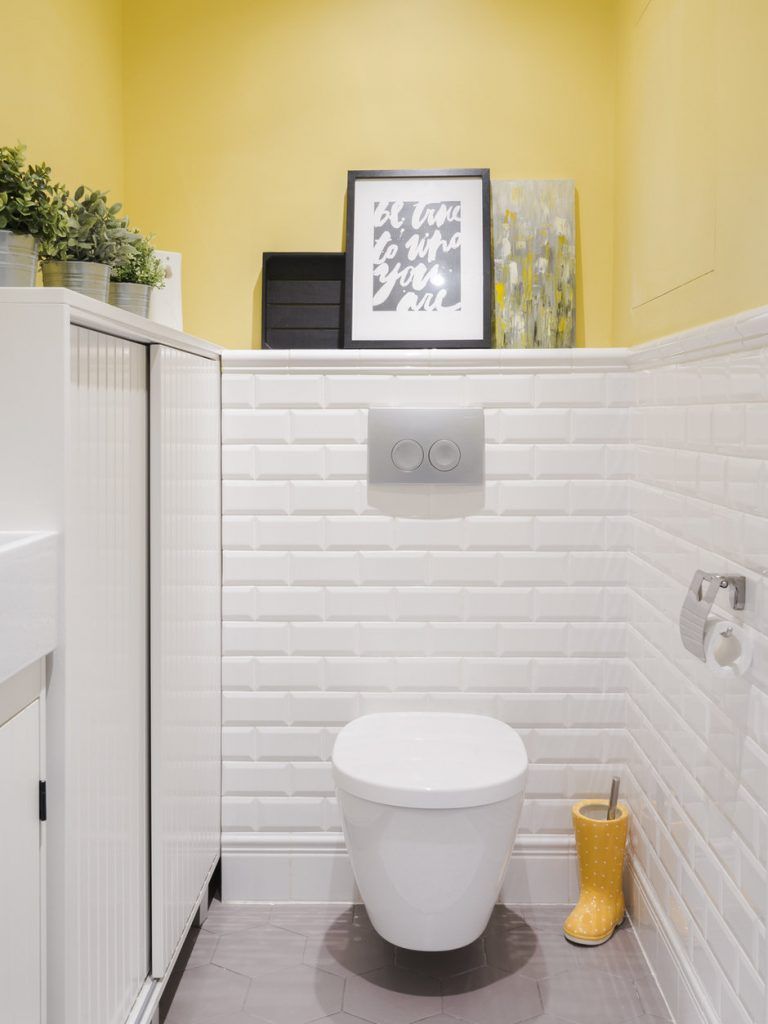Cele 2 bai aduc in prim planul aceeasi abordare minimalista a nordicilor, cu mult alb care amplifica spatiul. Usile tip oblon al dulapului de sub lavoar sunt o alegere interesanta. Baia de serviciu surprinde prin mixul de alb si galben, jumatate din perete fiind zugravit cu galben, iar cealalta parte placata cu faianta alba tip Metro.