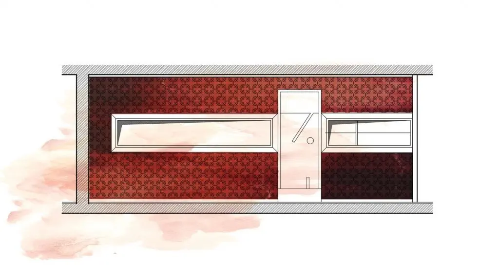Motive elegante si subtile pe geamuri, colorate in rosu