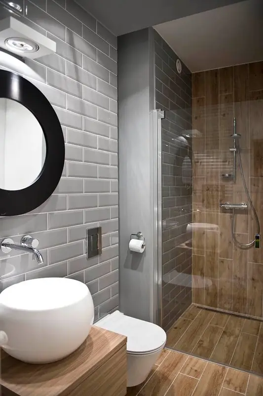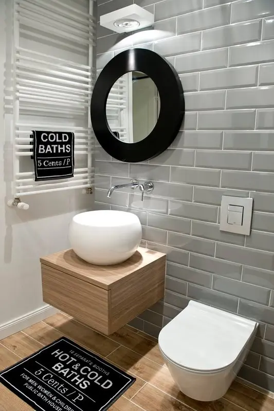 Excelent a fost gandita si baia, in spiritul functional al stilului nordic, cu faianta retro sau tip Metro; spatiul dusului este placat de o parte cu placi ce imita lemnul, placi care se continua inclusiv in pardoseala. Masina de spalat alaturi de uscatorul automat pentru rufe au fost incastrate intr-o nisa special creata pentru acest tip de depozitare.