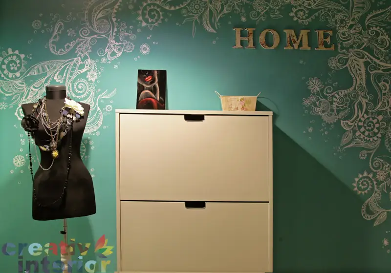 Cuplul si-a dorit un perete turcoaz fie in living sau in hol. Arhitectii au optat pentru hol. Peretele tucoaz a fost decorat cu o pictura murala deosebita, iar in bucatarie s-a continuat tematica cromatica cu un perete in aceeasi gama coloristica ca in hol si subtil integrata in restul camerelor.