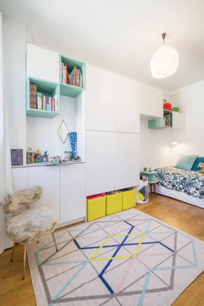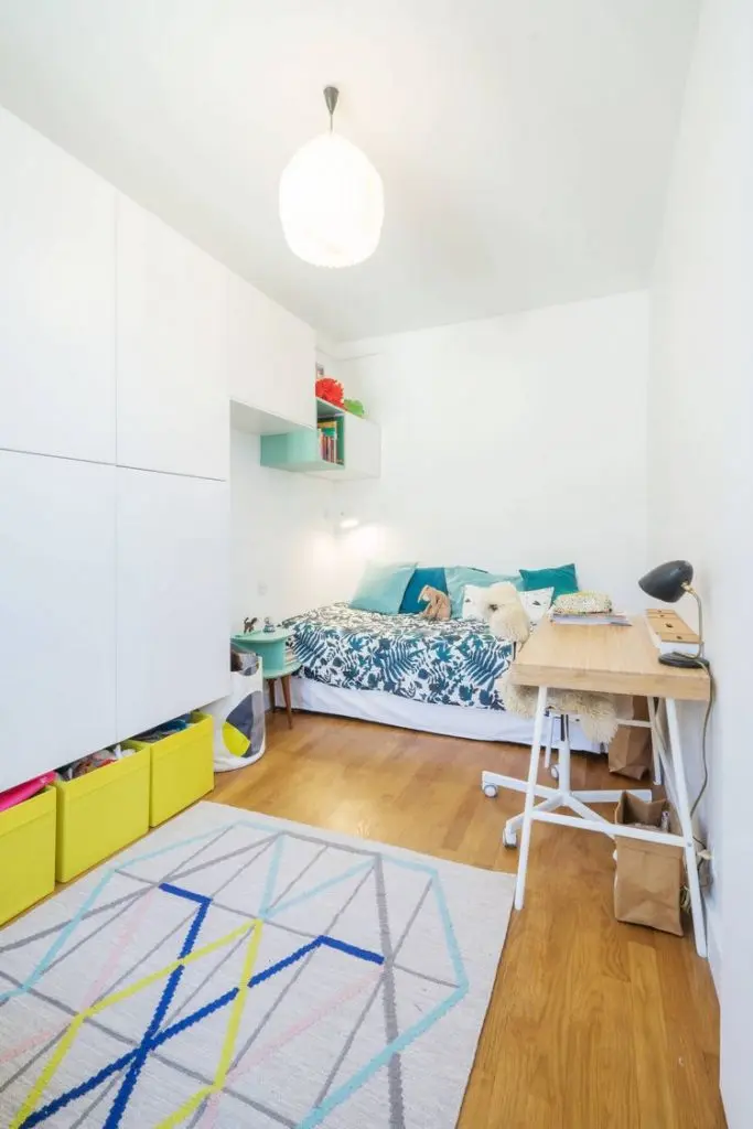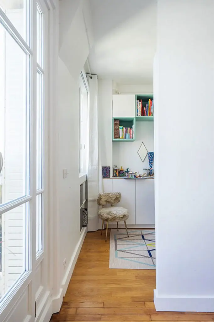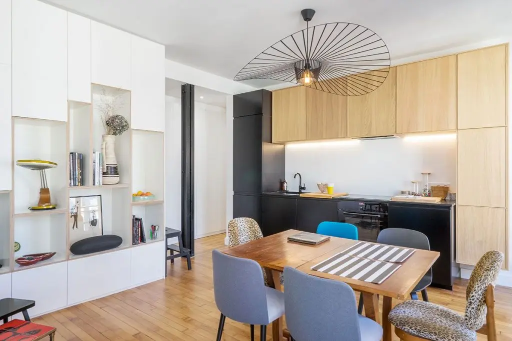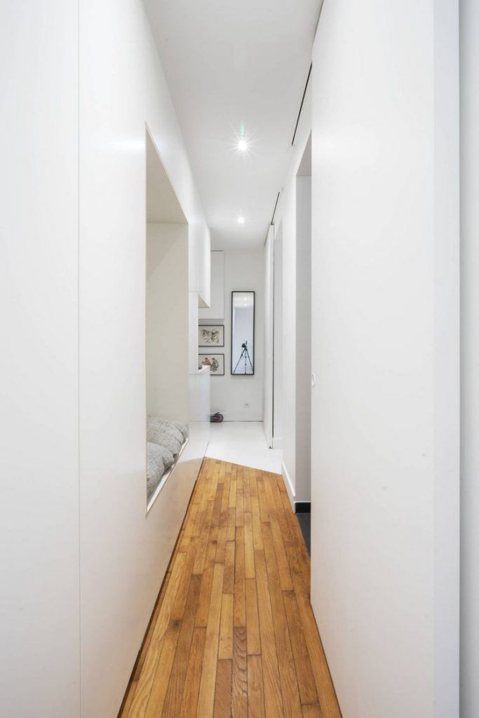 Pentru acest apartament de 50 metri patrati din Paris, echipa de arhitecti a propus o reamenajare radicala: functiunile au fost redistribuite, pereti eliminati si din doua camere, aceasta locuinta s-a transformat intr-una de trei camere.