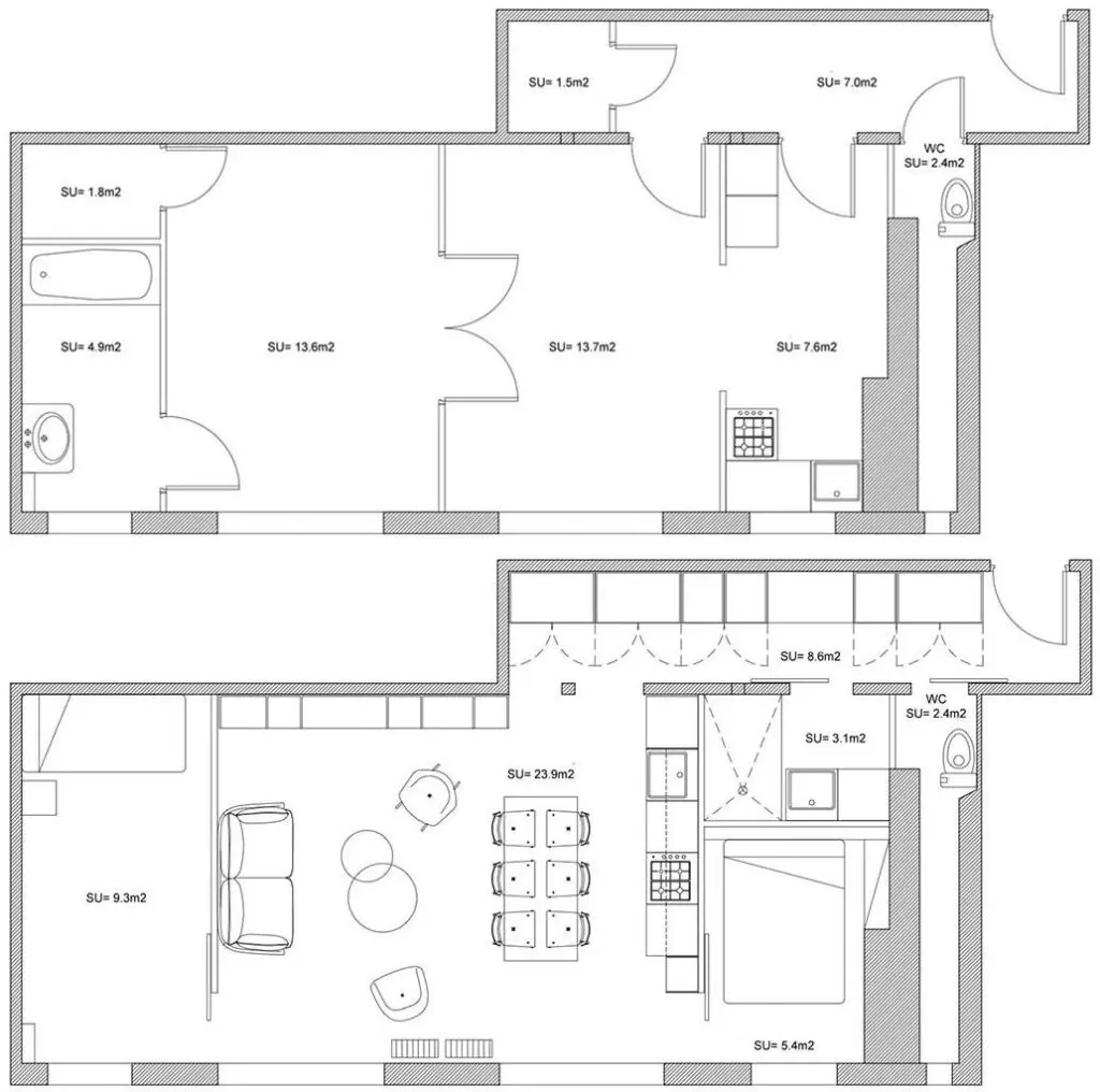 Curajoasa propunerea arhitectilor, iar indoiala beneficiarilor pe masura. Insa, nevoia de a crea inca o incapere a fost mai presus de temerile lor. Si-au asumat aceasta provocare si proiectul a fost finalizat cu brio. Rezultatul este un apartament fluent, unitar in concept, minimal in abordare.