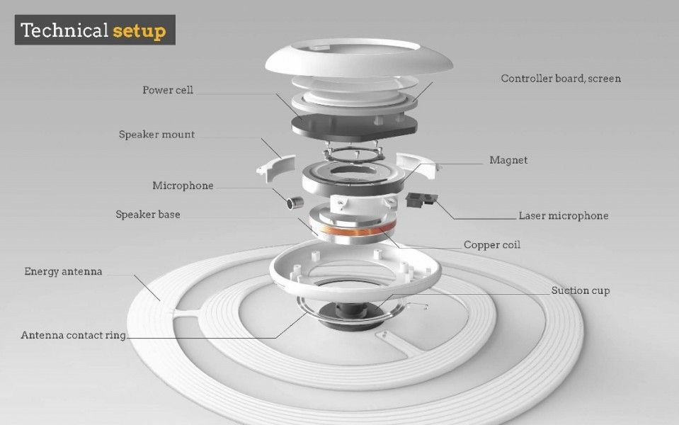 Dispozitivul arata ca o pietricica de marime medie, care se monteaza pe geam si printr-un sistem bazat pe microfon elemente din boxele audio si magneti, capteaza si anuleaza sunetul ambiental. Aparatul va permite sa eliminati total sau partial zgomotul sau sa controlati sunetul produs de acesta. Prin rotire veti putea selecta un sunet ambiental care imita natura pentru un plus de relaxare.