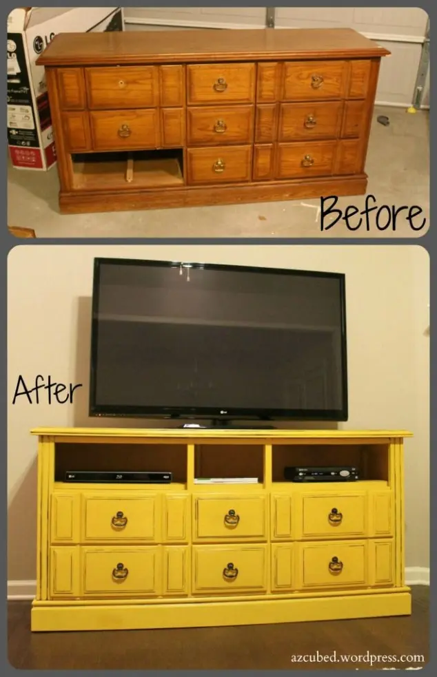 Transformarea unui dulap vechi, intr-un suport de televizor