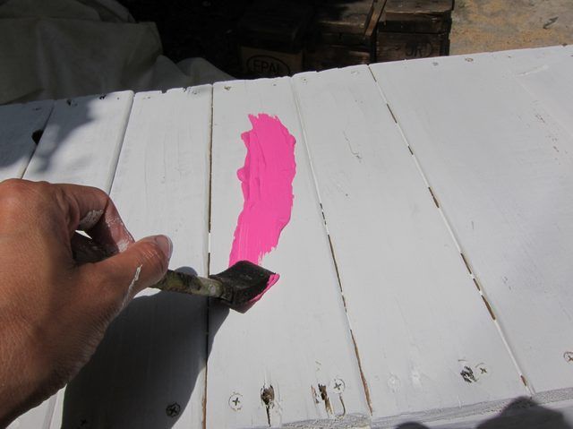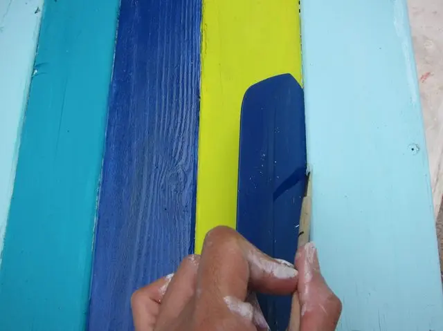Cu ajutorul vopselelor colorate decoreaza fiecare scandura in parte.