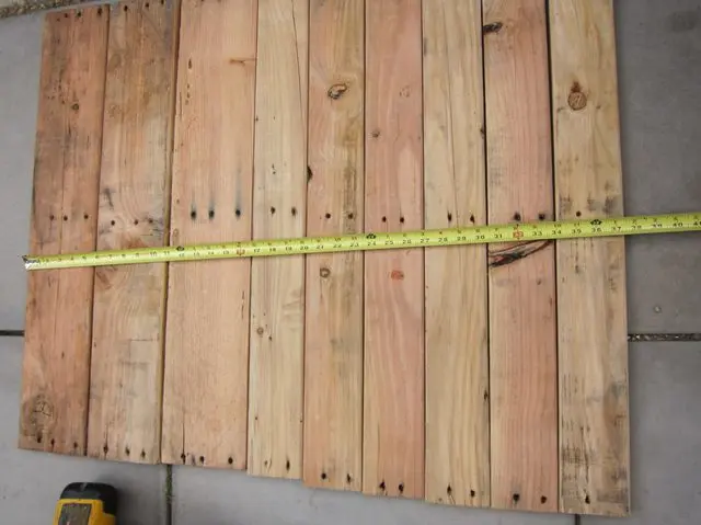 Dispune scandurile una langa cealalata, masoara si calculeaza cam cat de mare ai vrea sa fie banca;