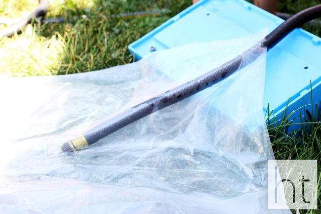 Sigileaza bine gaura pe unde a fost introdus furtunul cu niste banda izolatoare sau foloseste fierul de calcat si pergamentul pentru a topi aceasta iesire. Este indicat sa alegi banda izolatoare deoarece cand vrei sa il folosesti din nou, nu va trebui sa faci o noua gaura pentru a-l goli.