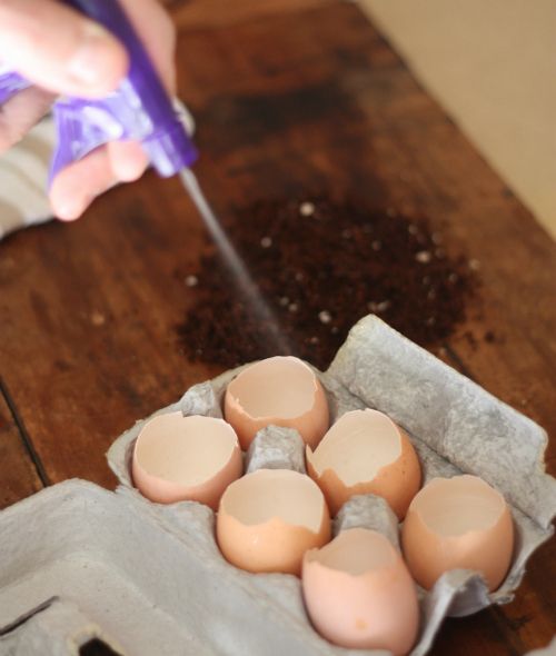 4. Urmeaza sa pui cojile in cartonul de oua si sa le pulverizezi cu apa pentru a fi bine umezite.