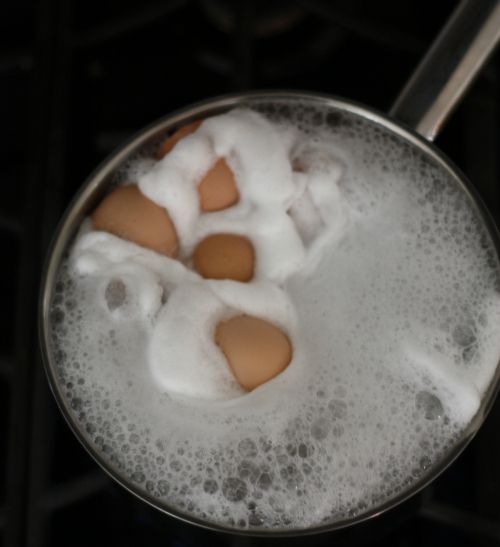 2. Dupa ce ai scos oul din interiorul cojii, spala usor “recipientul” si pune cojile la fiert cateva minute pentru a fi sigur ca sunt complet curate.