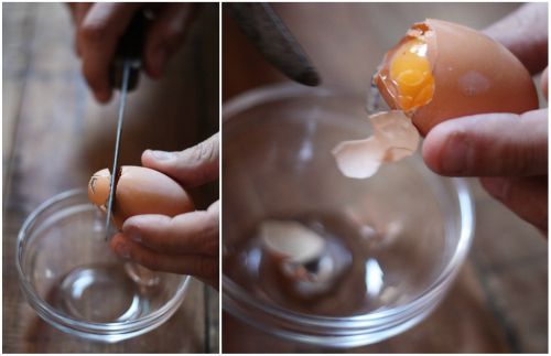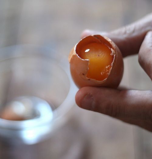 1. Primul pas este sa spargi coaja usor, in partea mai ingusta a oului, dupa care sa scoti continutul afara.