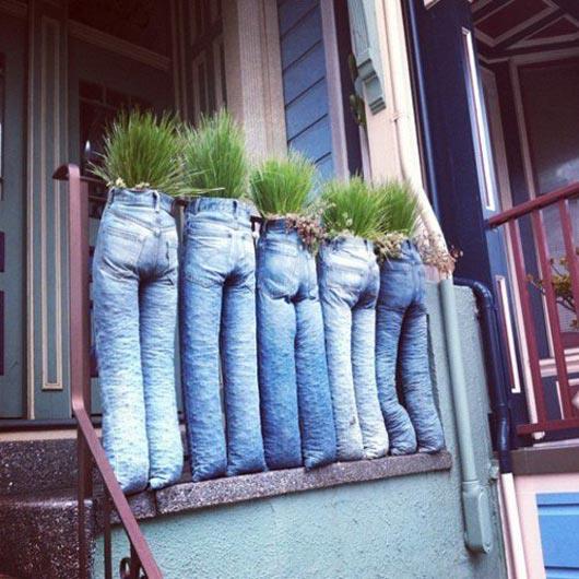 Aproape e gata totul. Trebuie sa iti alegi planta si sa o fixezi bine in pamantul indesat in blugi si deja iti poti suna prietenii sa vina la tine pentru a vedea noua ta realizare.