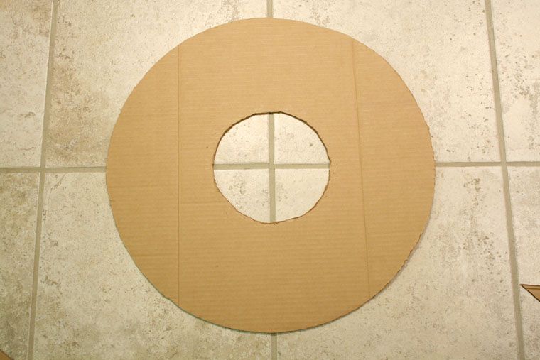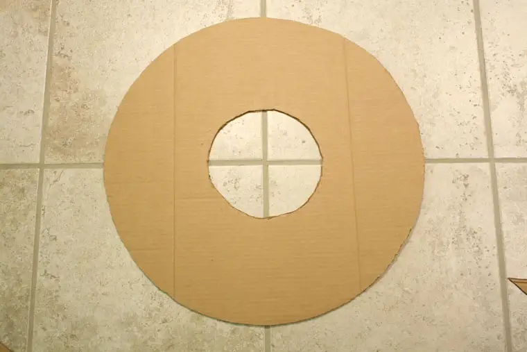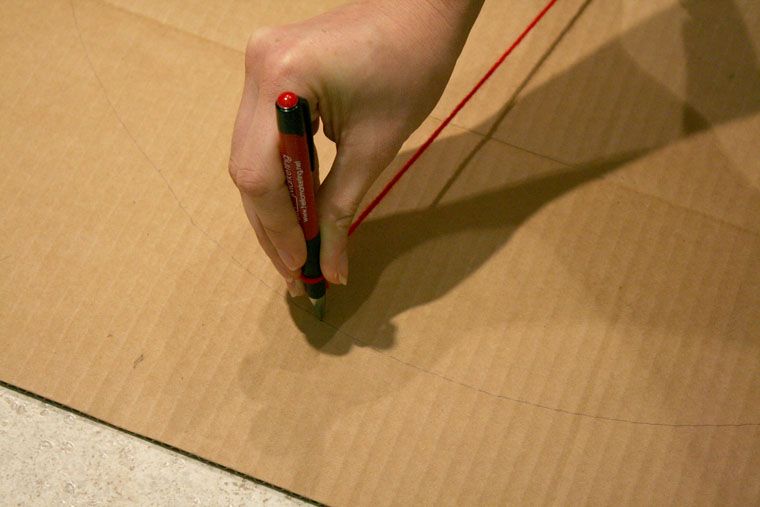 Pe bucata de carton de dimensiunile dorite desenati un cerc cu ajutorul riglei, creionului si a sforii. Decupati cercul cu grija astfel incat sa aveti o forma perfect rotunda.