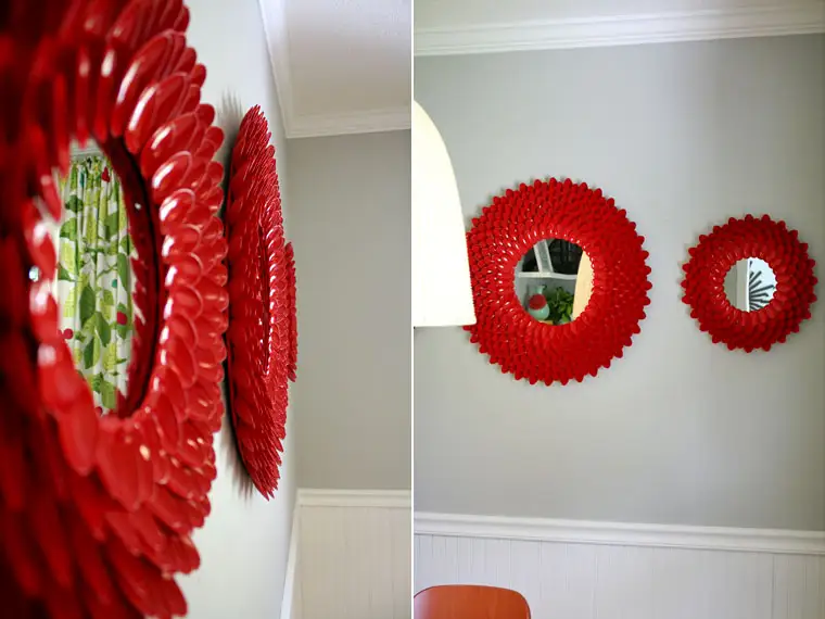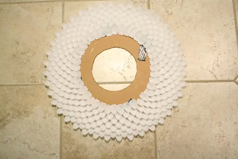 rama pentru oglinda din linguri de plastic