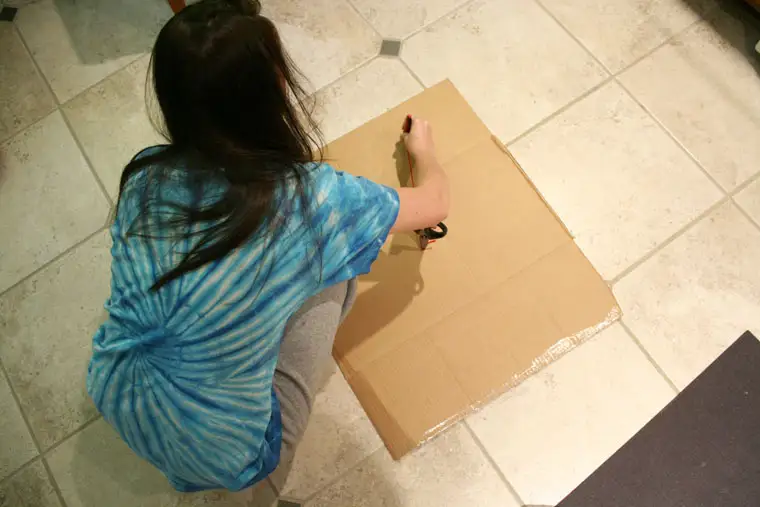 In functie de marimea oglinzii care se va incadra in interior faceti o gaura in centrul cartonului si decupati zona in care va intra oglinda.