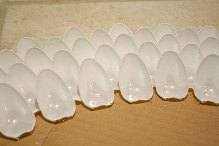 Taiati manerele lingurilelor cu ajutorul foarfecii;