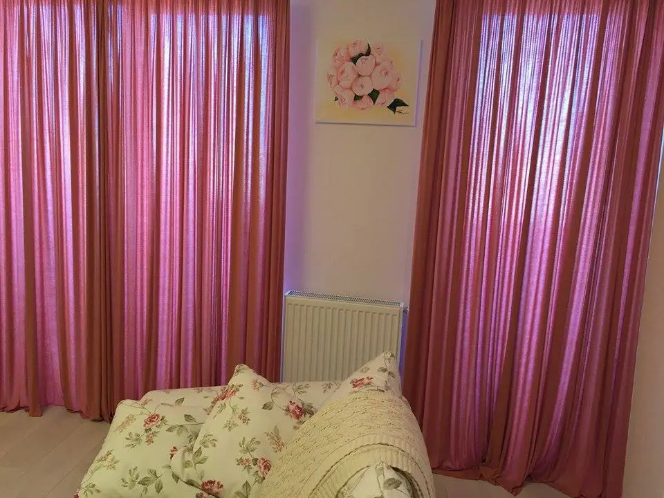 Cromatica este calda, cu nuante pastelate de alb, gri si roz. Perdelele sunt supradimensionate, pentru a crea ideea de spatiu.