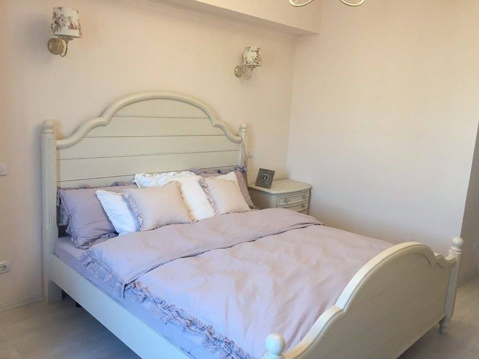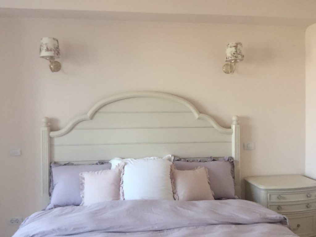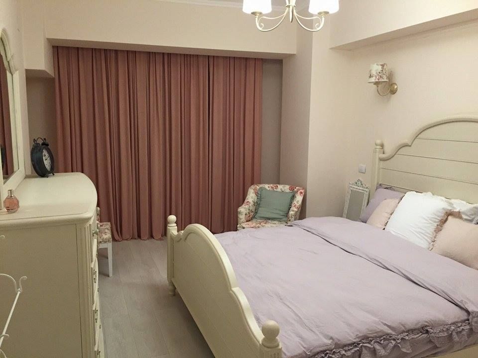 In dormitor se continua tonurile calde si romantice. Astfel, patul are o nuanta deschisa si forme ale cadrului rotunjite. Restul mobilierului a fost ales in aceeasi culoare, creandu-se astfel unitate. Ideea de spatialitate si dimensiune este data de oglinda si draperiile supradimensionate.