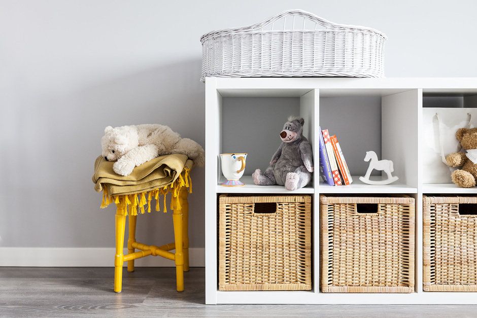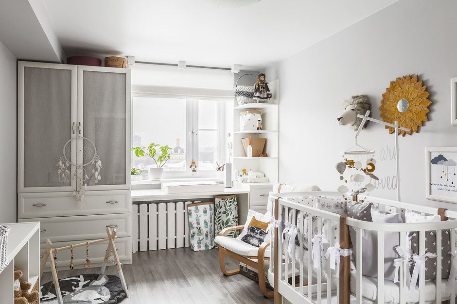 Pentru camera bebelusului, Karina a fost artizanul din spatele multor decoratiuni de aici. Linia cromatica este aceeasi folosita in intreaga casa, accesoriile si jucariile fiind cele care anima decorul. Un dulap similar au integrat si in aceasta camera pentru a fi siguri ca reusesc sa pastreze laolalta toate lucrurile necesare unui copil.