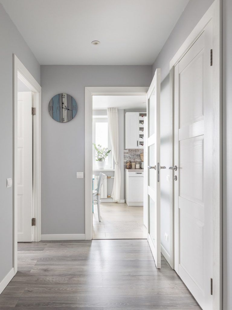 Pentru ca spatiul sa para mai mare, au optat pentru vopsea in ton de gri light, deschis, de la Dulux. Au avut si optiunea albului, insa griul pe care l-au si testat in prealabil s-a dovedit a fi o alegere mai inspirata; reprezinta fundalul pe care au adaugat accente discrete de culoare si chiar un perete-accent cu tapet in zona de luat masa din bucatarie.