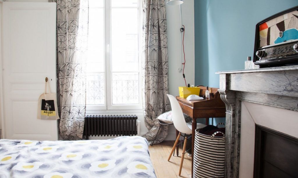 In materie de amenajare, camerele spatioase ale apartamentului au ferestre inalte, care permit luminii naturale sa inunde spatiu fara prea mult efort, dar si draperii pentru a mentine racoarea in dupa-amiezile calduroase. Mobilierul modern, precum rafturile albe si canapeaua albastra, se imbina, extrem de elegant, cu fotoliul de epoca, cu imprimeuri calde, florale.