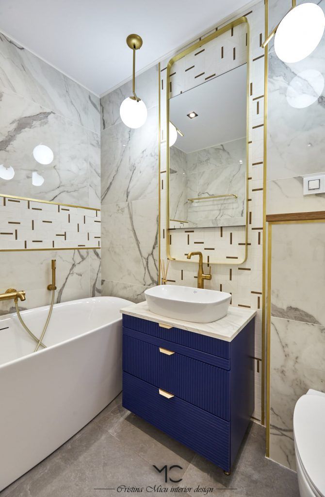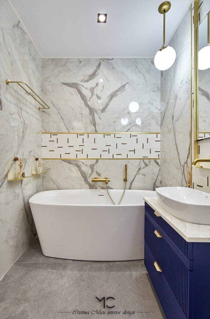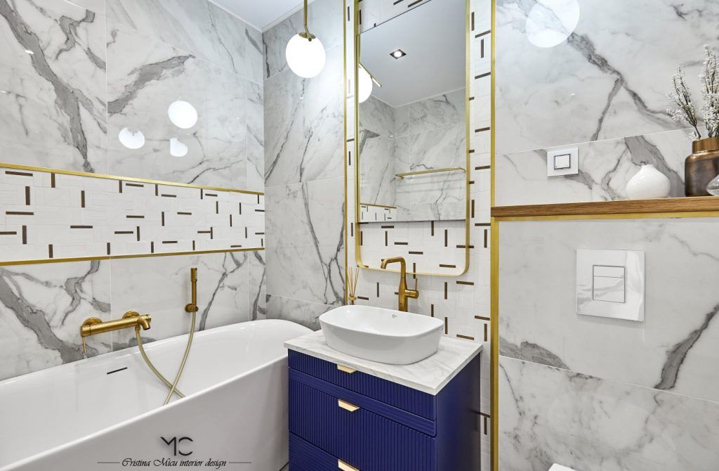 “Baile au fost amenajate pentru el si pentru ea, in alb si negru, subliniind feminul si masculinul, in aceleasi note elegante. Dus walk-in, cada freestanding, placi ceramice de la Ragno, baterii aurii, toate imbinandu-se armonios.”
