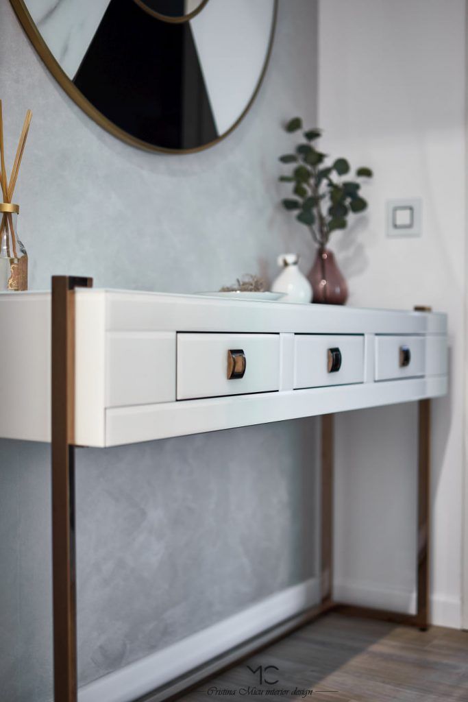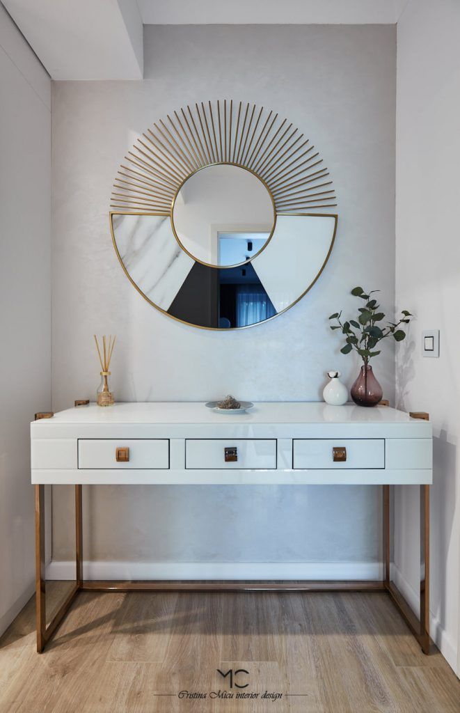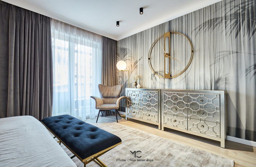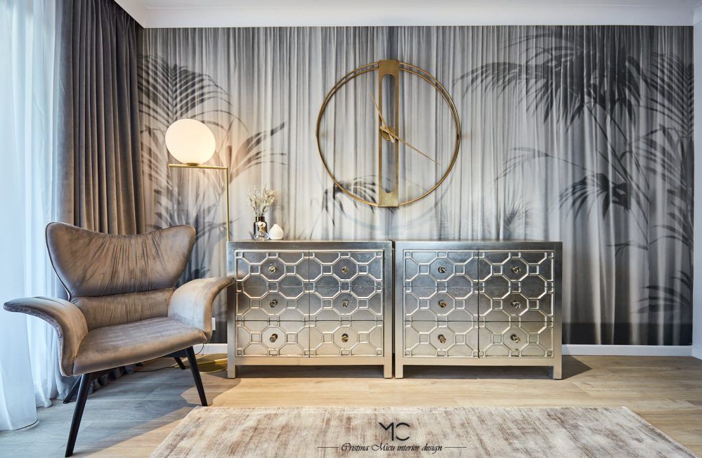 Stilul modern cu influente glam cu accente pretioase, aurii si argintii, defineste aceasta amenajare ce poarta amprenta arhitectei Cristina Micu.