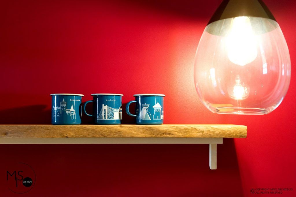 Pentru a sublinia conceptul general, arhitectii marturisesc ca au ales sa insereze “elemente si decoratiuni semnate de alti colegi de breasla, designeri romani: “blaturi de bar din stejar masiv Bucin Mob, covorul de la Dare to Rug, decoratiuni Design & After, cani email Odaia, cana portelan Una ca Luna, veioza Light Play, casute decorative din lemn Ubikubi.”