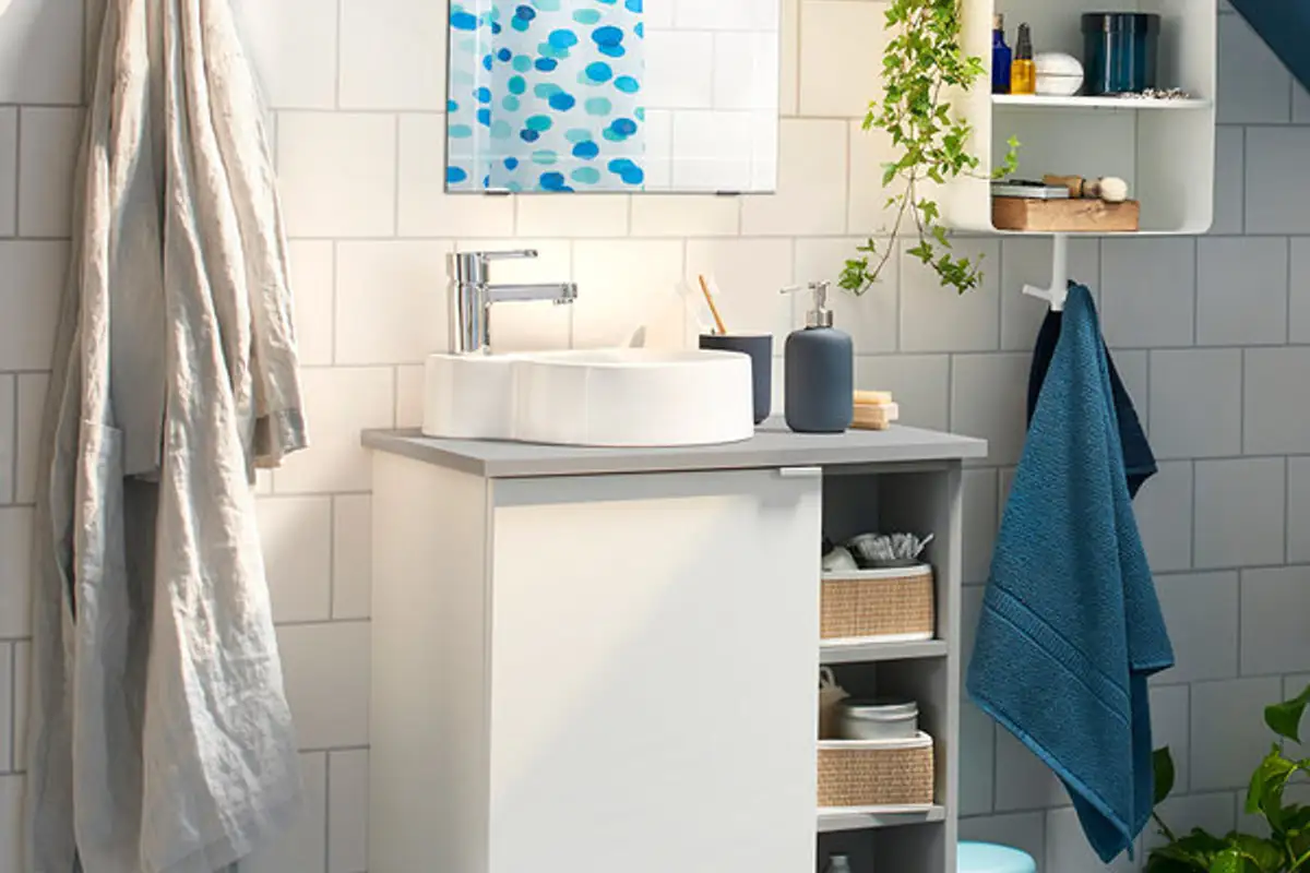 Custom-made furniture can be very helpful, especially in small spaces like bathrooms. The space under the sink can be transformed into an excellent place for various storage, from cosmetics to detergents or towels.