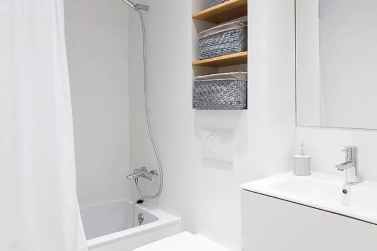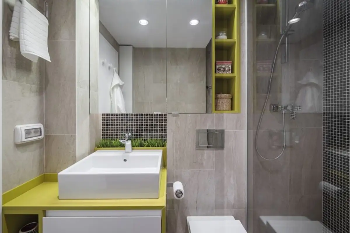 Opt for a sliding door instead of the classic, hinged one. This way, you will be able to use the bathroom space more efficiently, especially in the case of the service bathroom.