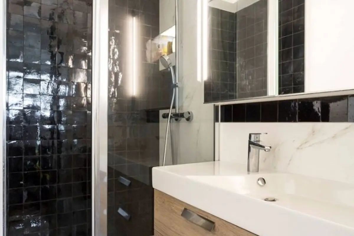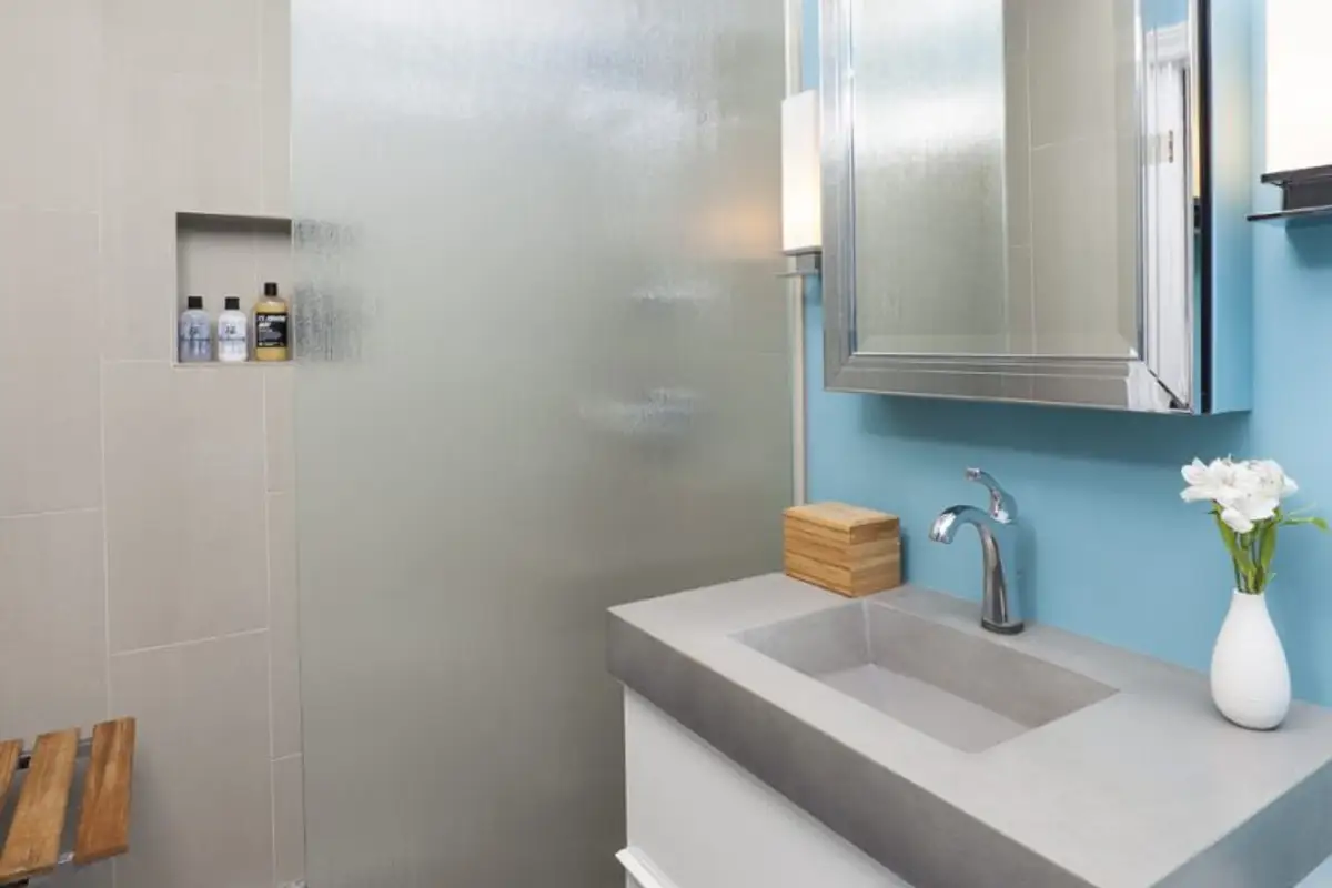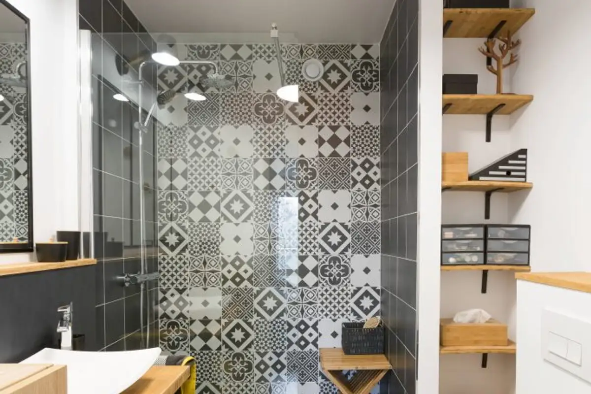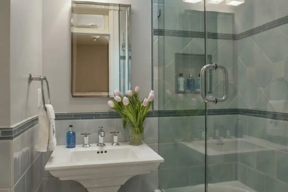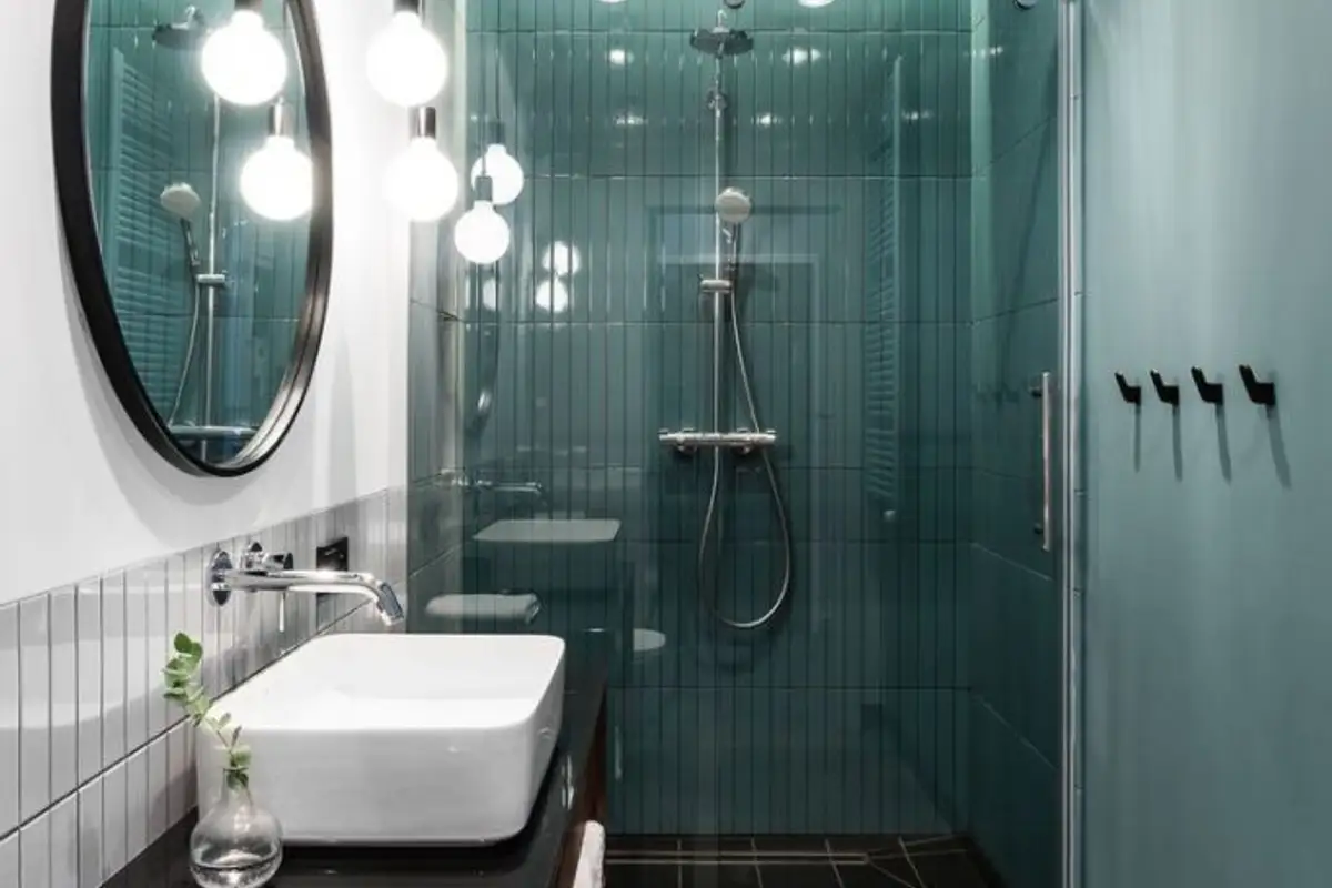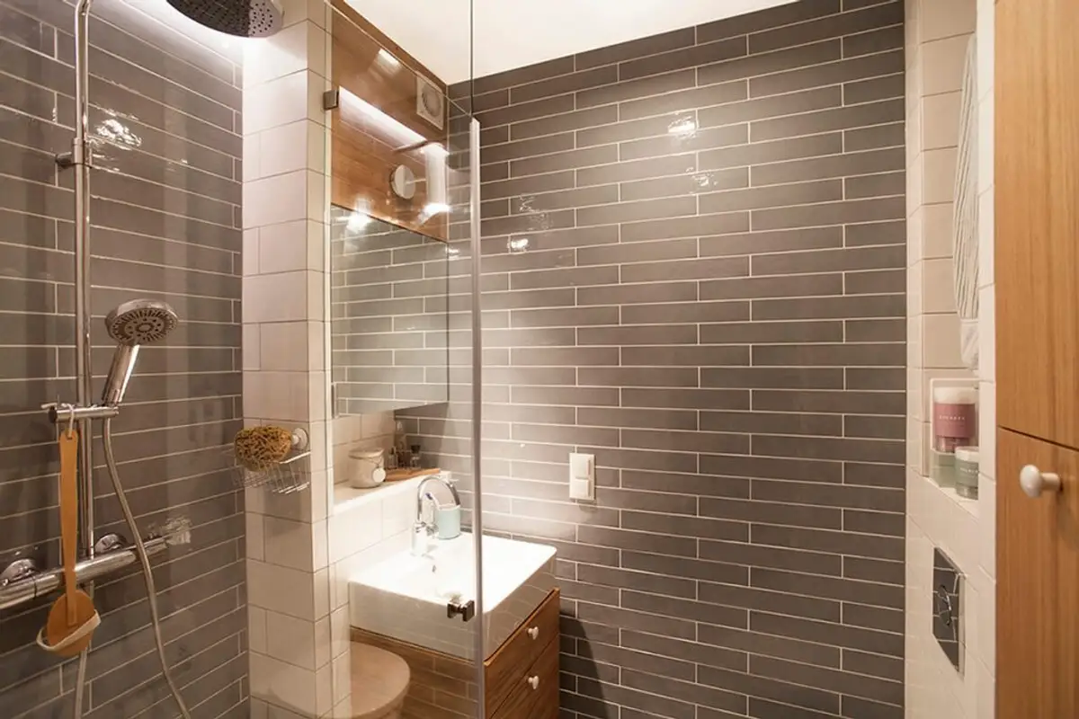If you want to add extra style to your design, opt for creating an accent zone, such as a different color for the shower area that contrasts with the rest of the room.