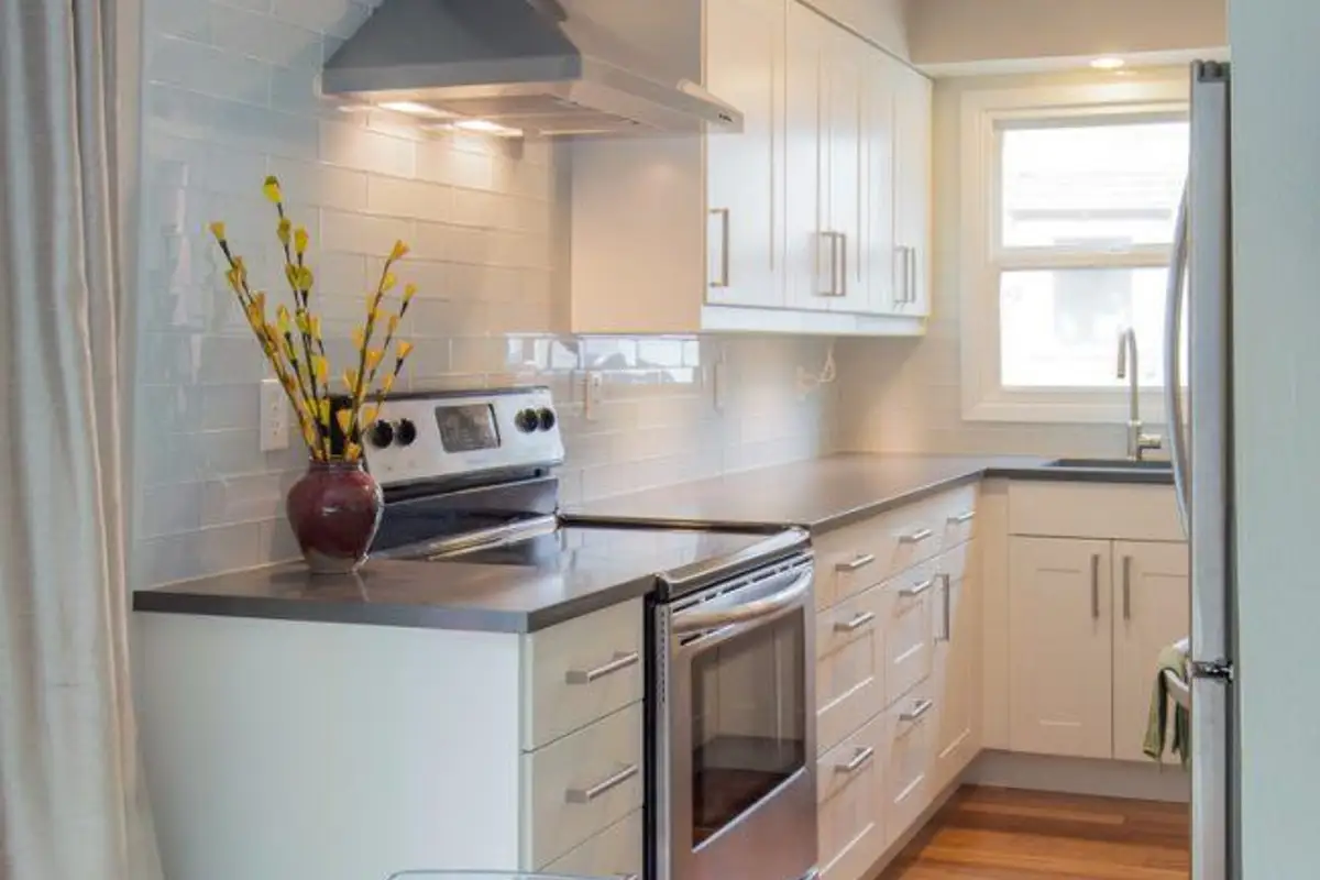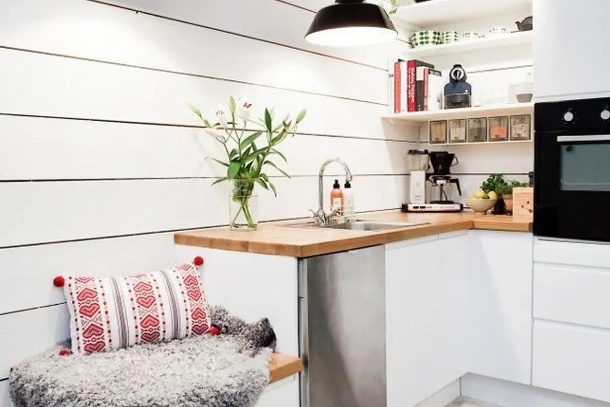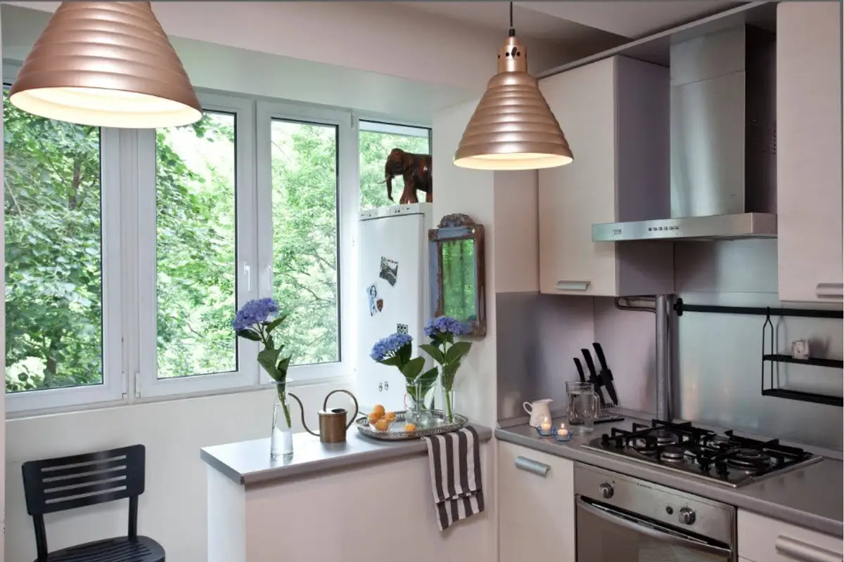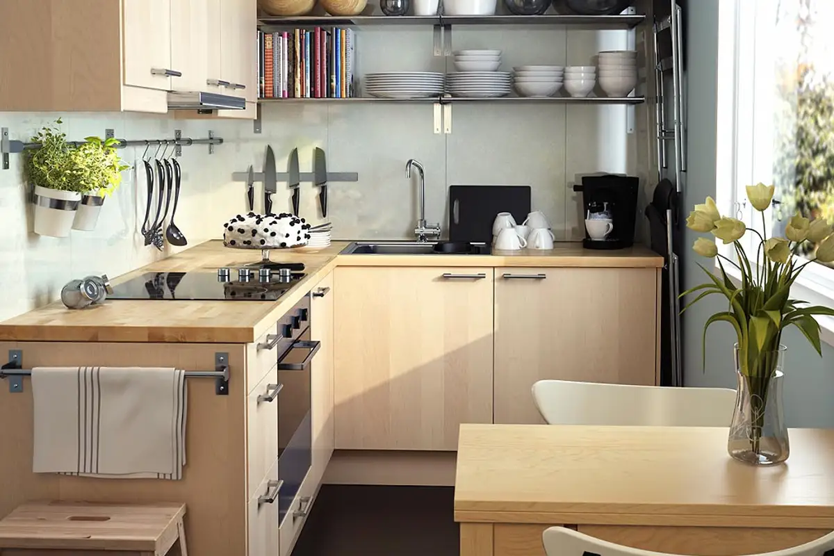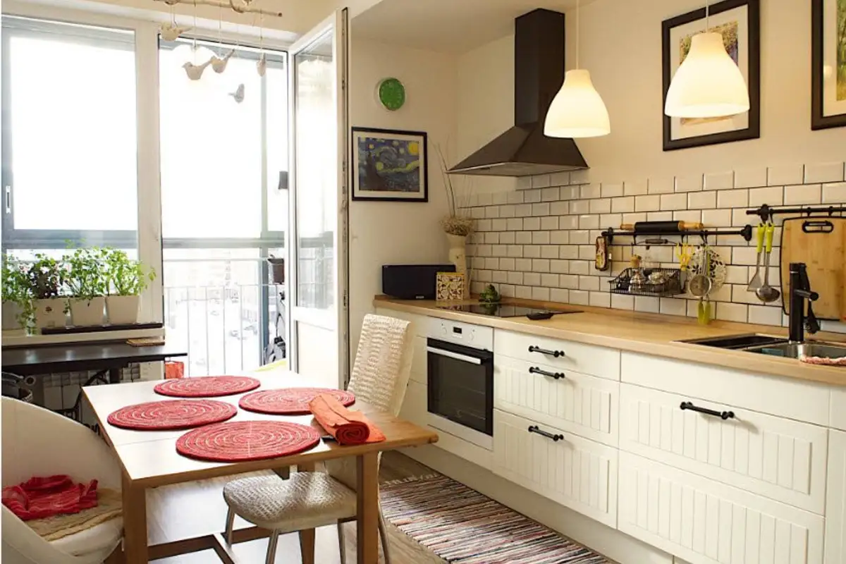 You can also consider removing partitions to gain additional space. However, make sure that the wall can be removed, in case of a load-bearing wall between rooms. There is also the possibility of extending your kitchen into the balcony or hallway by removing the door and the respective wall.