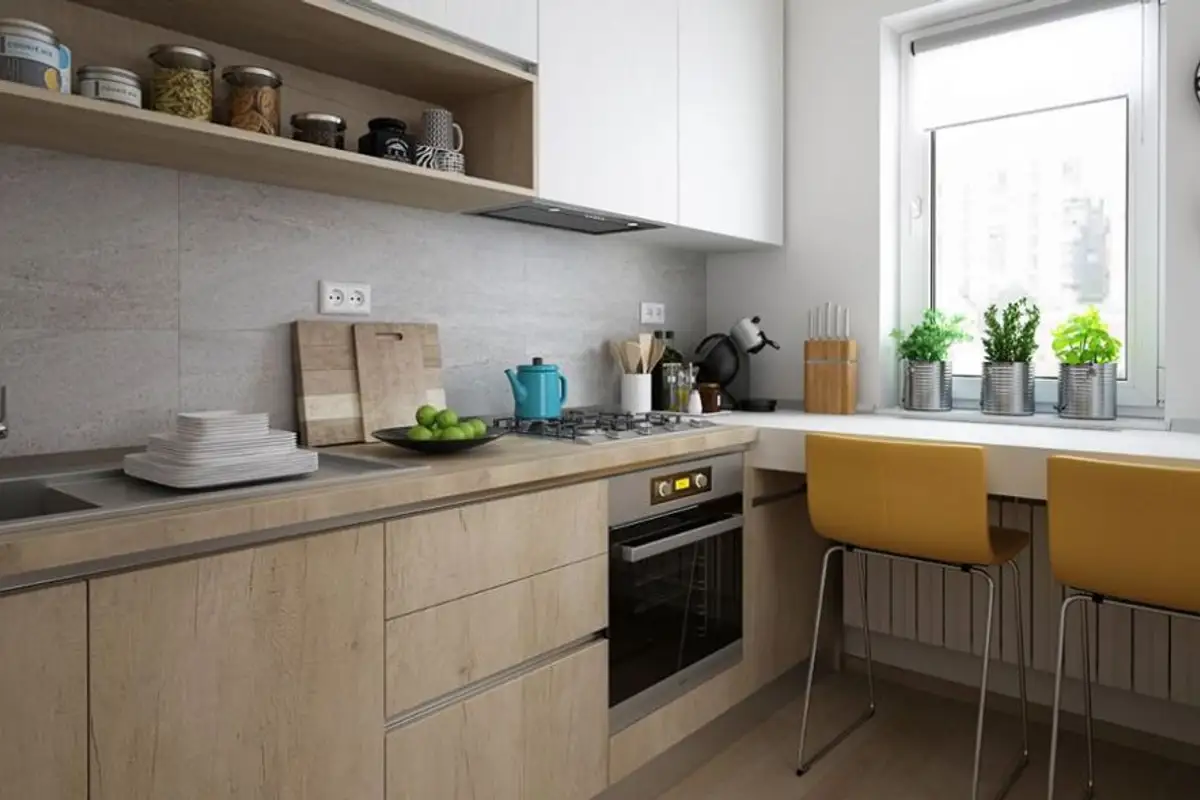 When choosing furniture and appliances, keep in mind the arrangement methods that will help you have a functional space. Thus, in a small space, the key word is adaptation. Having a limited area, compact kitchens, arranged linearly are the best option.