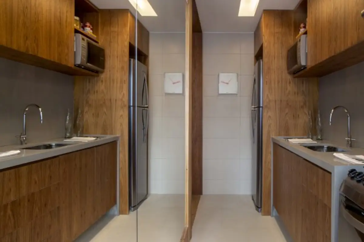 You will notice first of all the configuration of the apartment; the rooms are long and narrow, which often causes additional headaches. We invite you to follow in the photos above how the functions of the space were conceived so that natural circulation is maintained.
