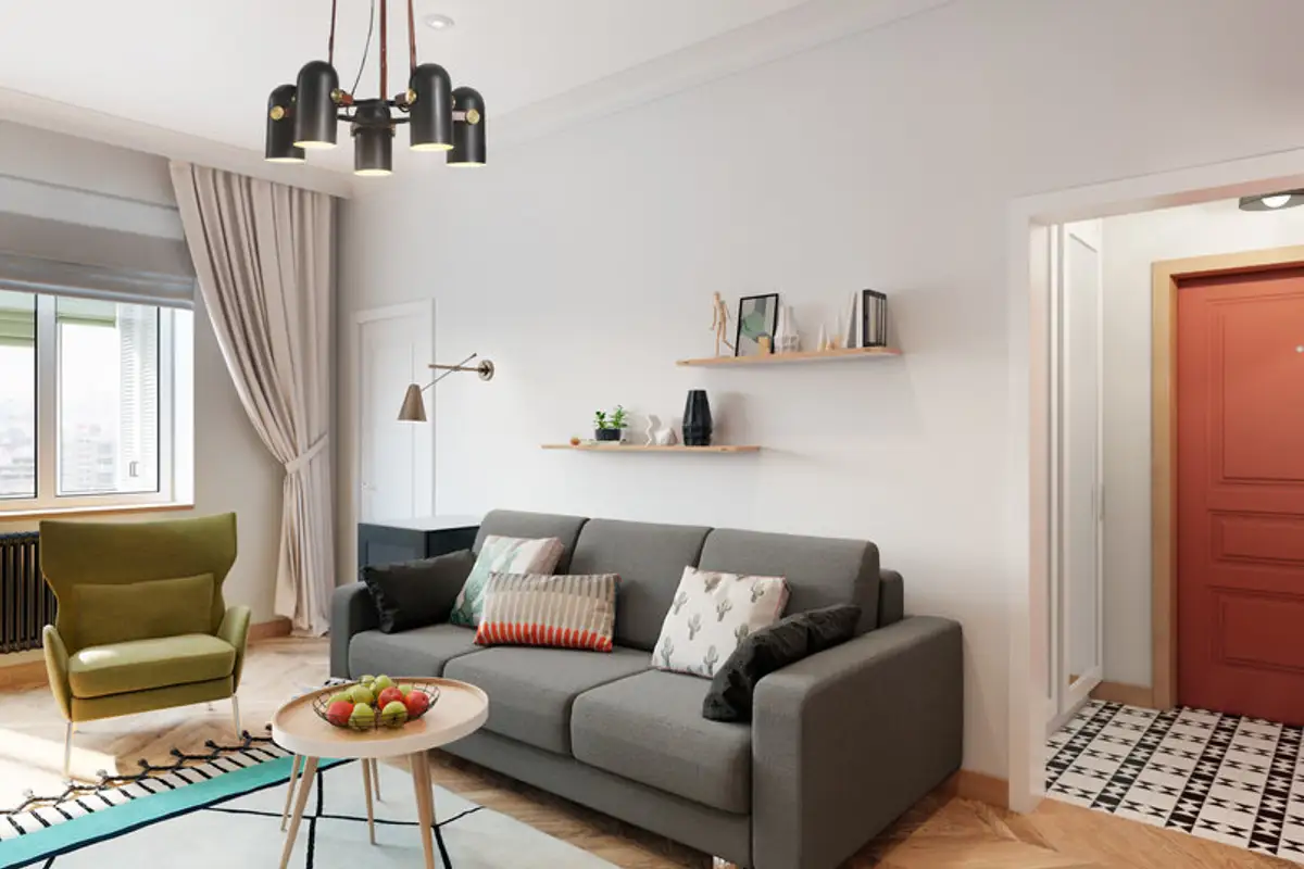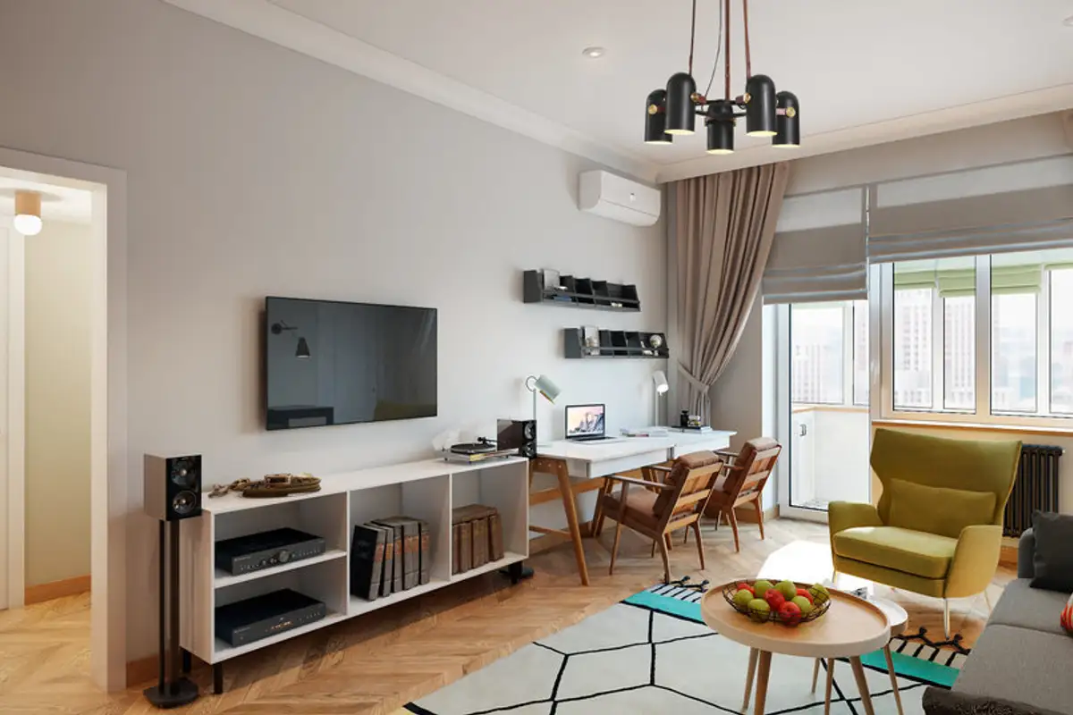 The 3-bedroom apartment, covering 80 square meters, needed to provide comfort for all family members. The most important change proposed by the designers was removing the wall separating the living room from the hallway. This made the living room more spacious, increasing it from 16 square meters to 23 square meters.