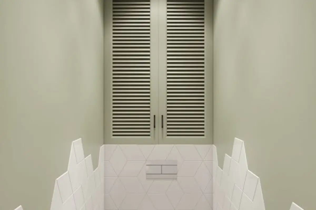 Then, they moved the door to the master bedroom so that access would be from the living room. In its place, they created a storage area, which was necessary in this space; this move also corrected the unnatural placement of the bedroom door right next to the entrance door.