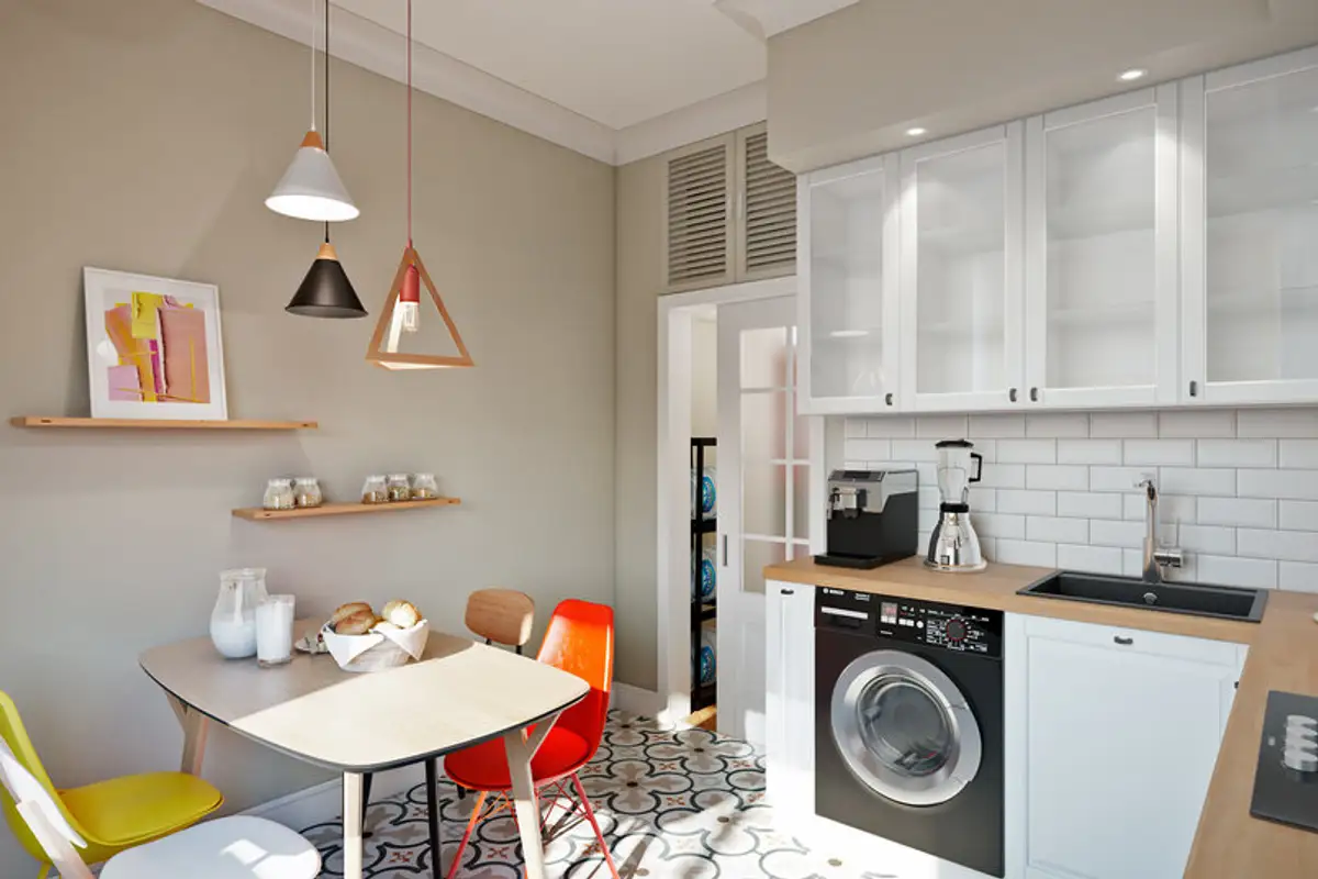 Touches of color come to cheer up the space and bring a touch of the family's personality; we thus have colorful chairs, lighting fixtures with different designs, or decorative ceramic tiles on the floor level.